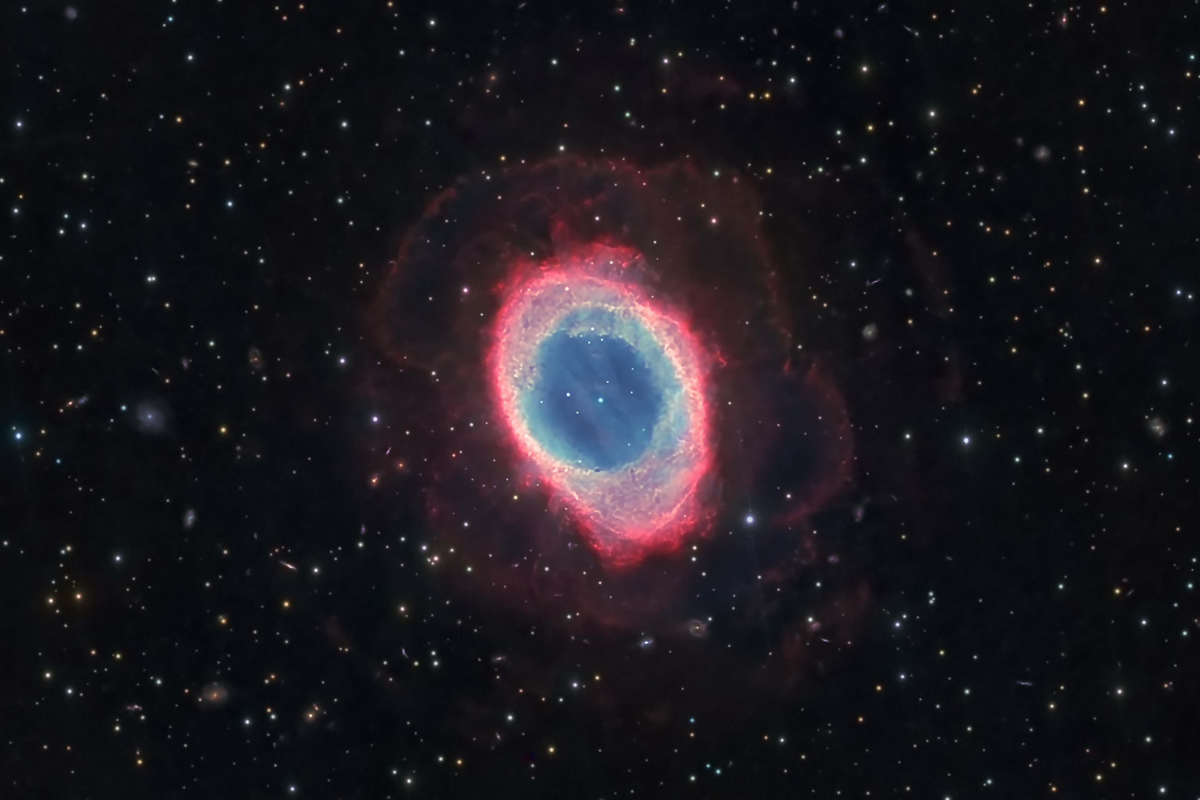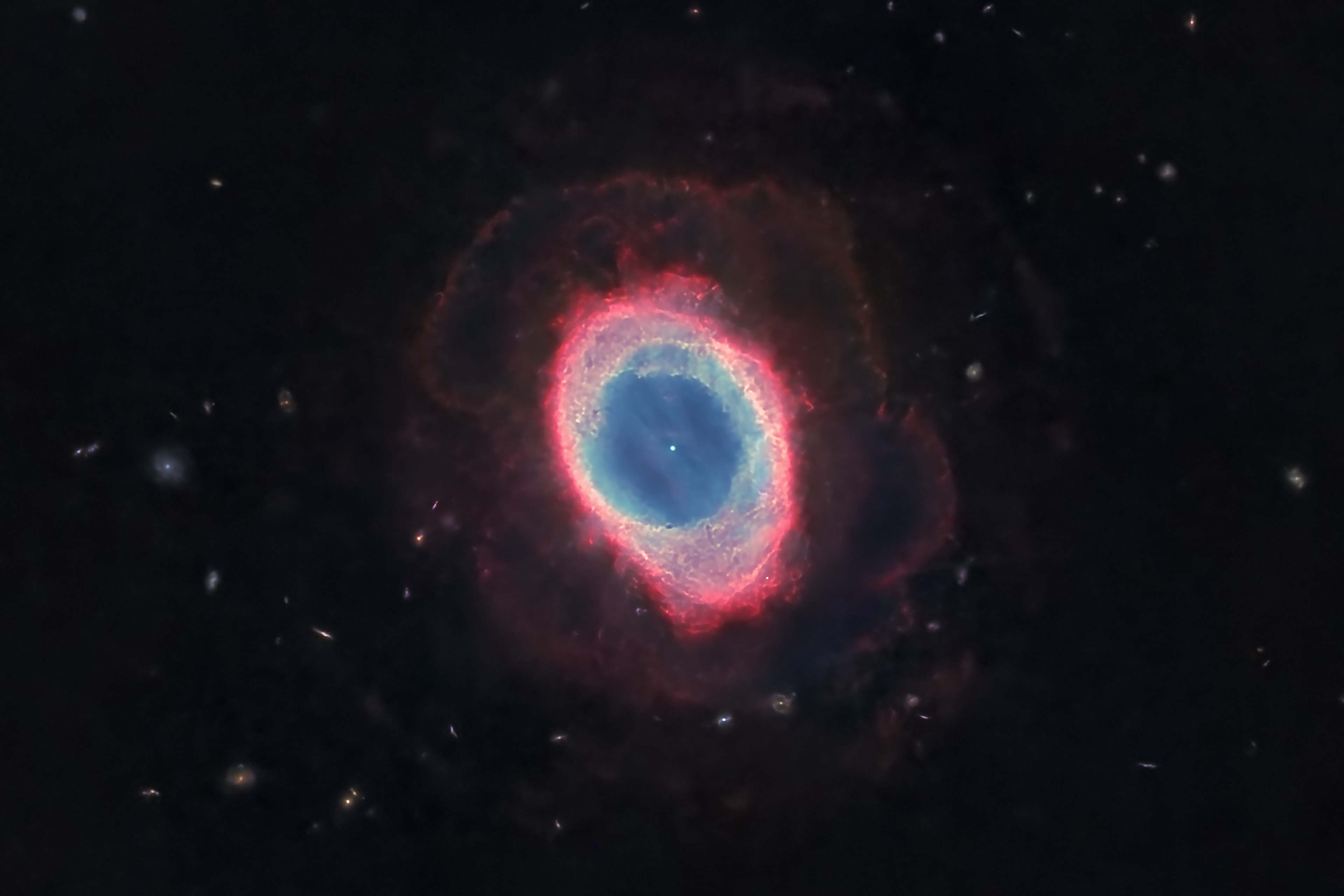 and a 2nd very faint reddish shell outside the first. Also note